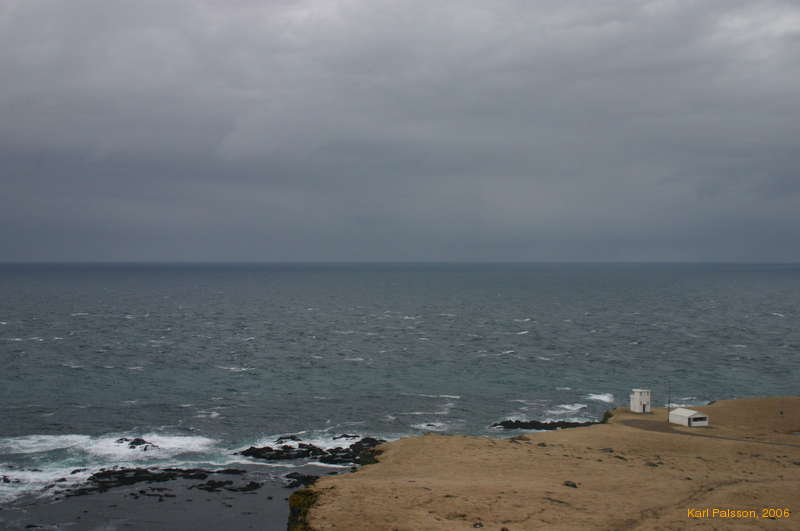 Shoals and foreboding weather in front of the Látrabjarga lighthouse