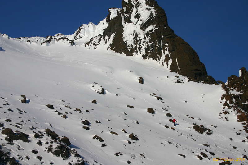 Aadne in his ski boots is the only one capable of getting his skis back