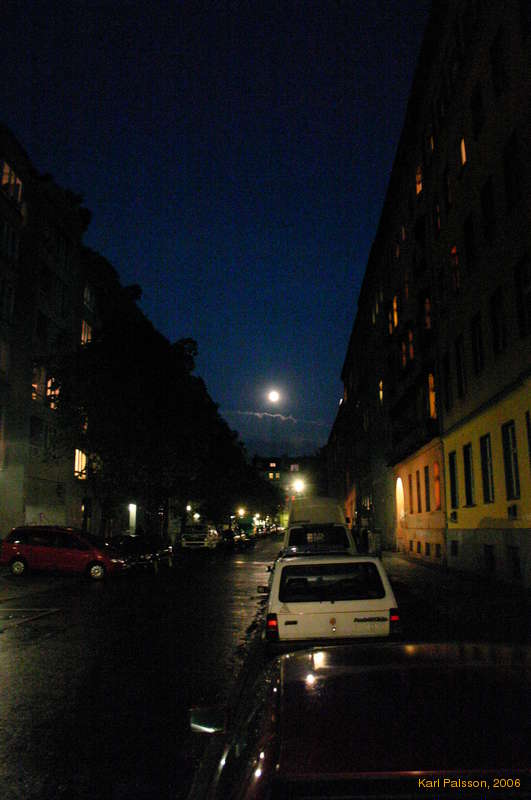 Moonrise on a side street in Berlin