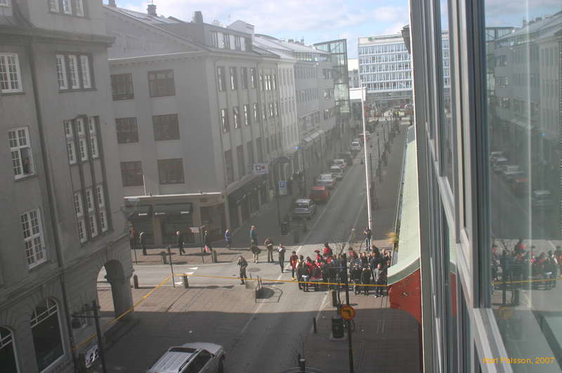 A crowd gathers