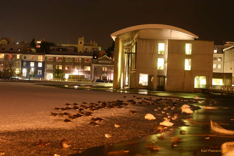 Birds snoozing on the ice at Tjörnin