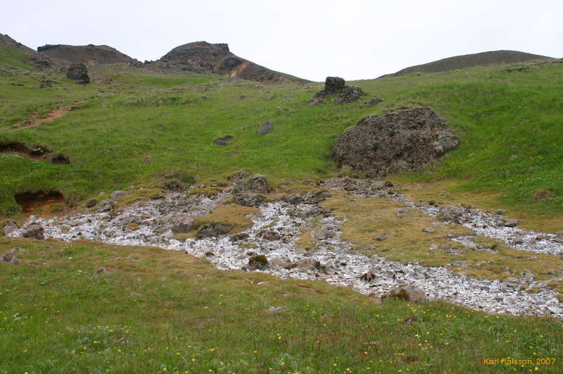 Changing flows left these encrusted rocks behind