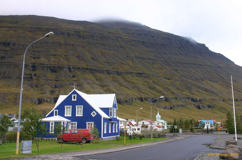 The town is tucked under the mountains