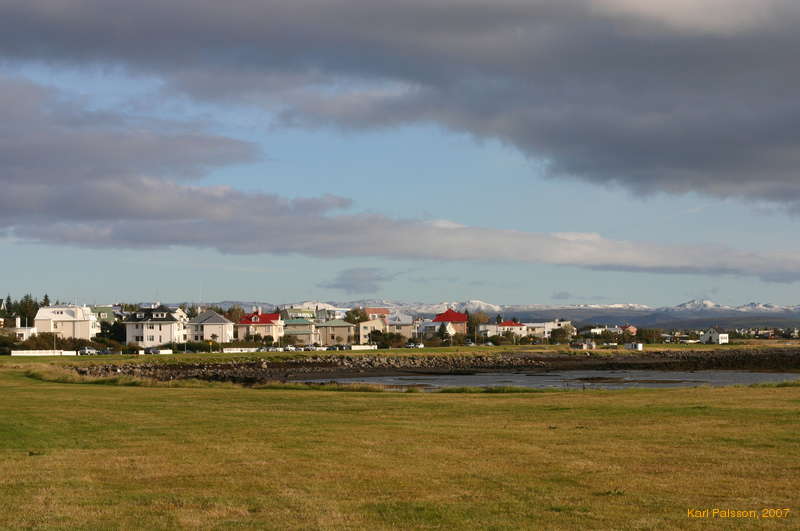Colourful houses along the shore at Ægisíða
