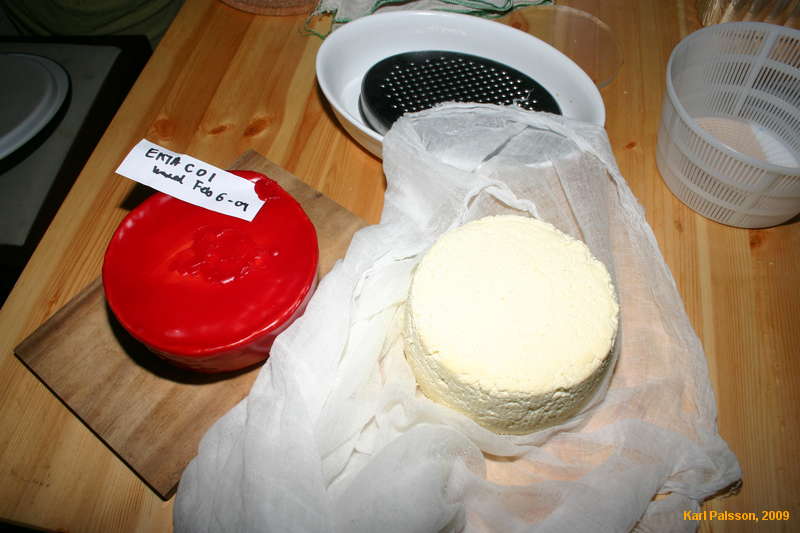 My first waxed cheddar, and ricotta salata being salted
