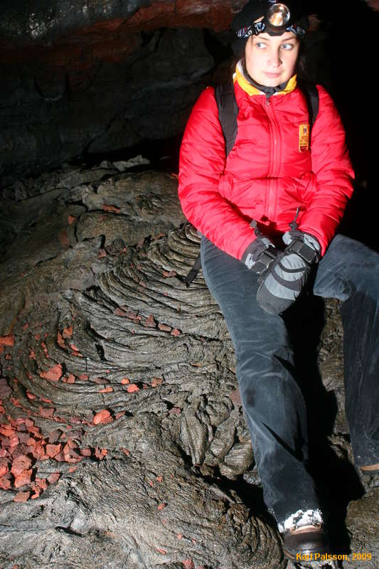 Julia sitting on some ropey lava
